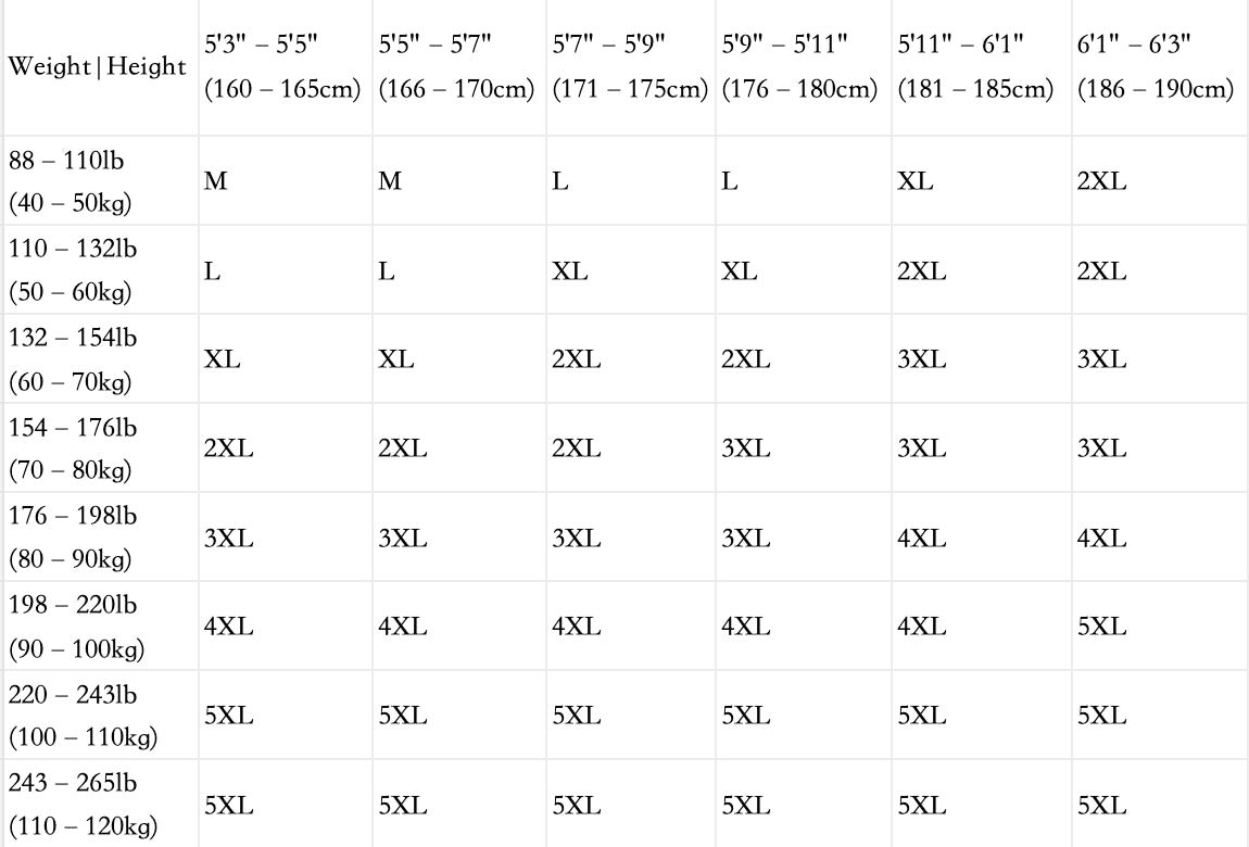 3XL | 47.2in/120cm | 30.7in/78cm | 23.2in/59cm |
